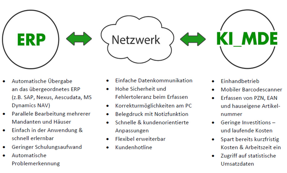 Diese werden über die KI_COM Schnittstelle ans Netzwerk angeschlossen. Die erfassten Daten werden automatisch an das beim Kunden vorhandene ERP-System übergeben, dadurch entfällt ein kostspieliges doppelt Erfassen der Daten.