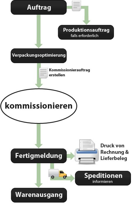 | Das zusammenstellen von bestimmten Artikeln aus einem bereitgestellten Sortiment aufgrund von Aufträgen |